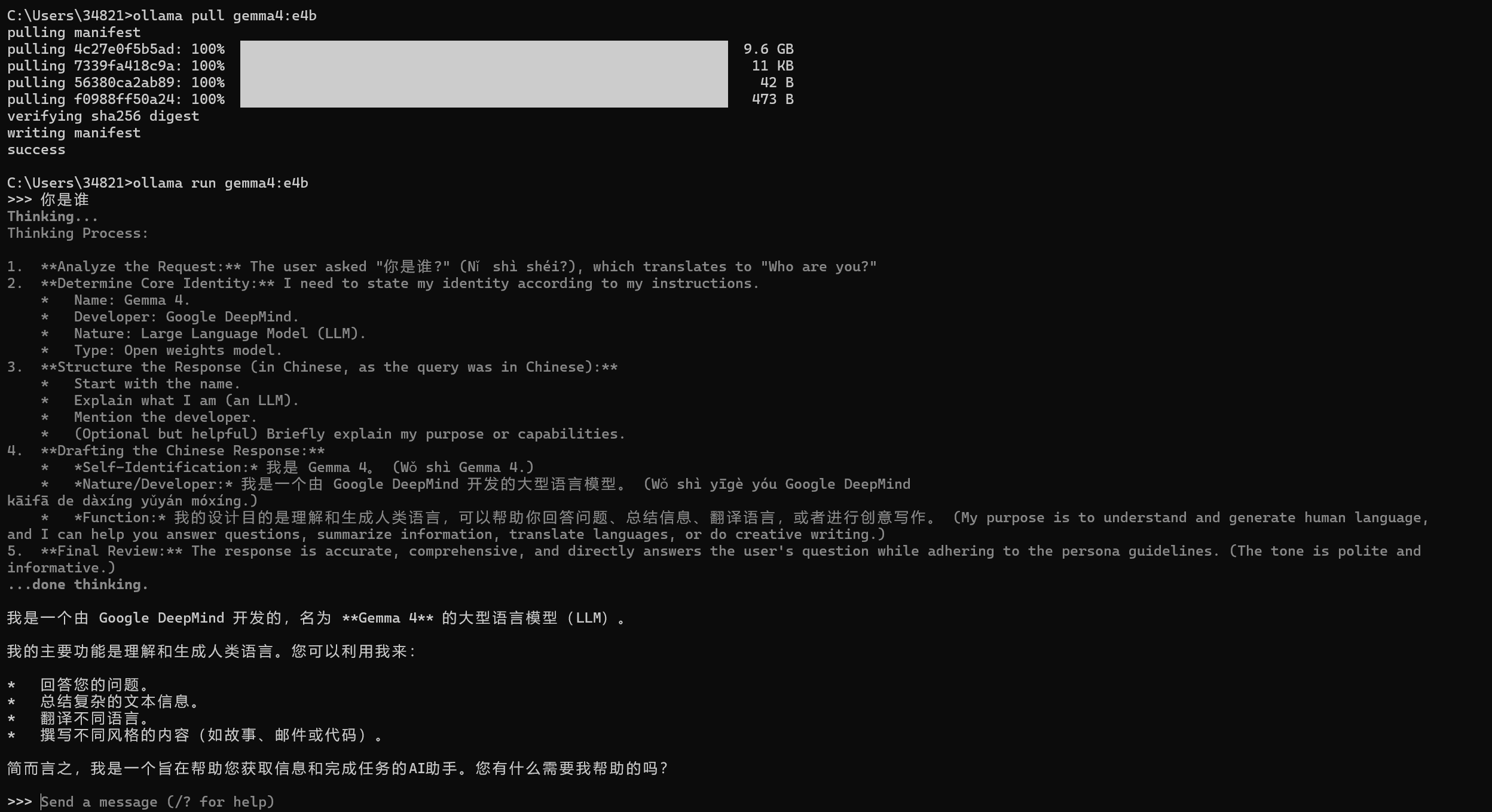 因为最近4月初,Google开源了一个大模型gemma4,可以进行本地部署。