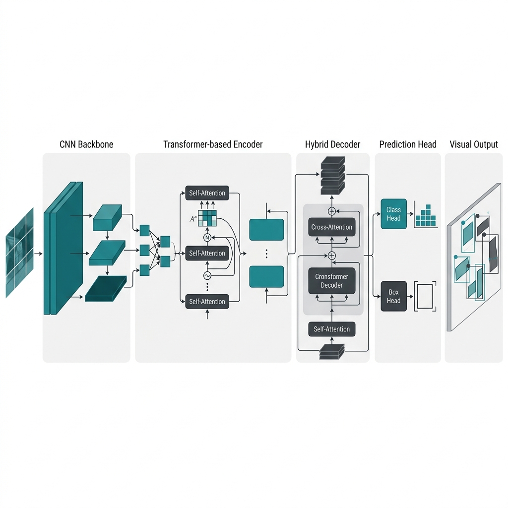 - **跨尺度融合 (CCFF)**:通过简单的 CNN 层进行多尺度特征汇聚,在保证精度的同时,显著降低了 Transformer 全局计算带来的显存压力。
