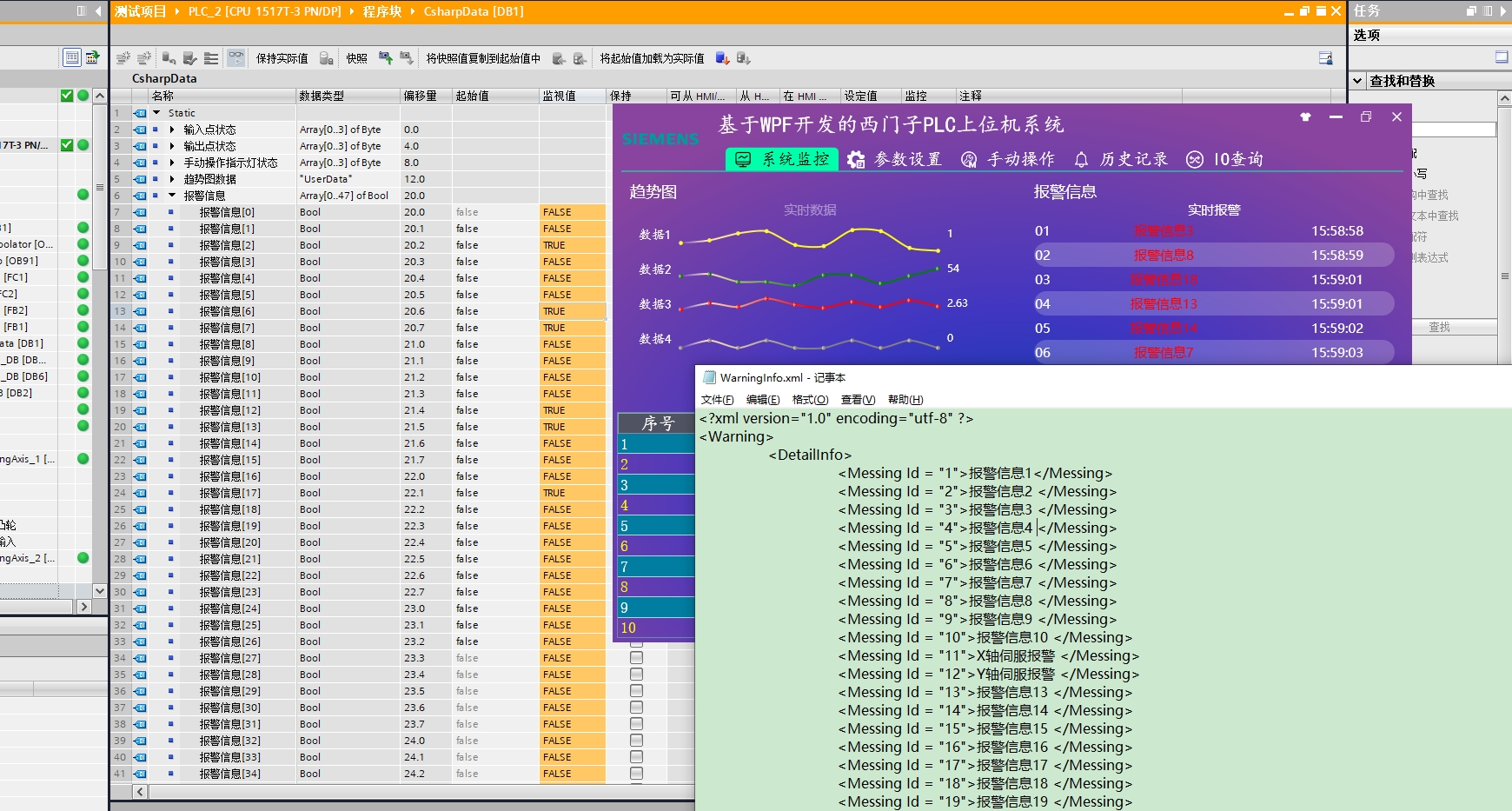 MinitorViewModel调用XmlHelper的ReadXML方法读取XML中的报警配置信息; MinitorViewModel解析PLC的报警状态位,通过Warning方法整理当前报警信息(包含报警内容与时间);- 通过