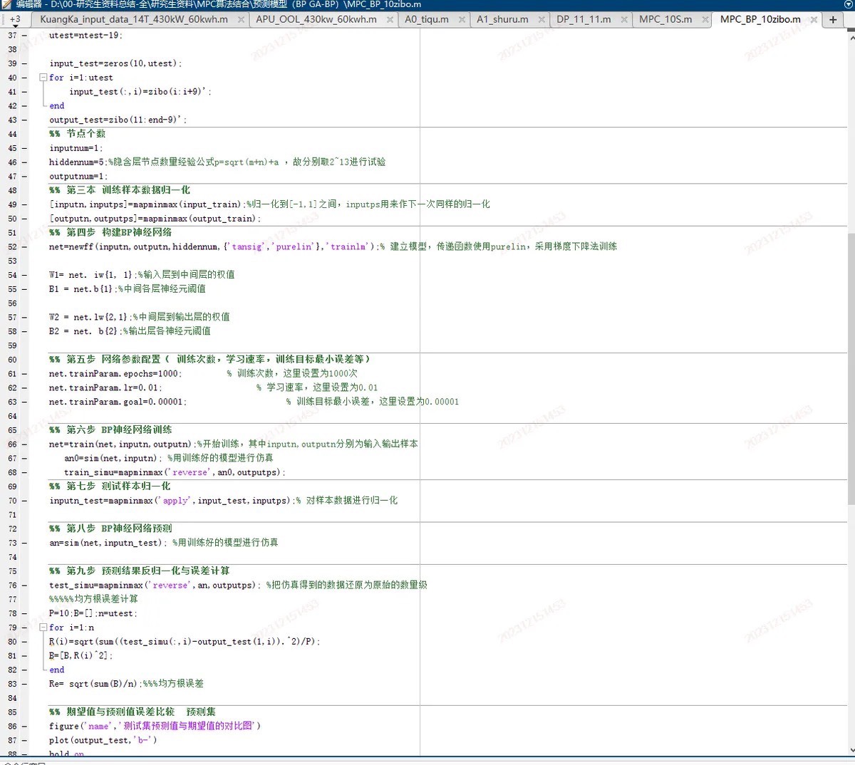 系统通过多个脚本文件(如 Untitled4.m、rbftimetrcspeed.m、mainRBF.m 等)实现了不同预测窗口长度的配置:
