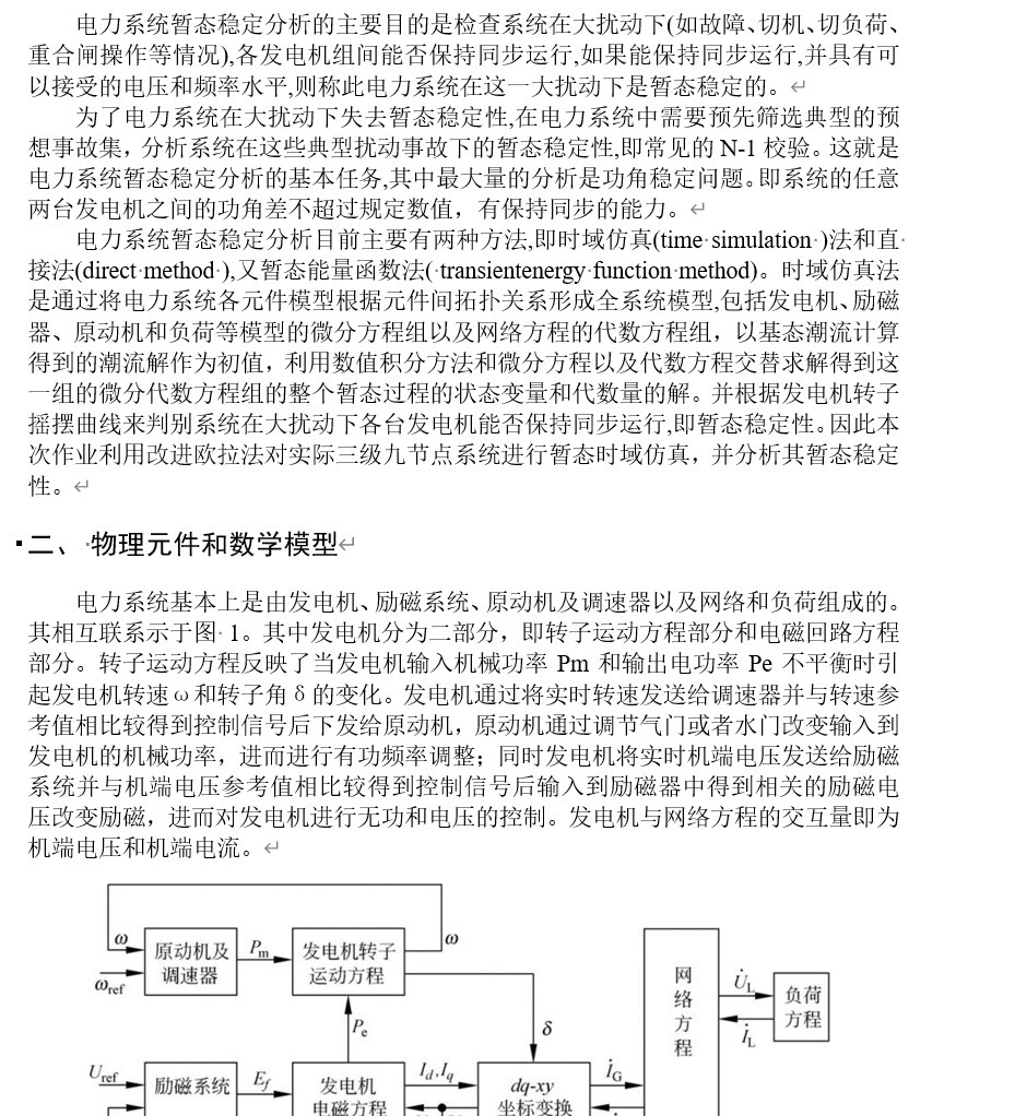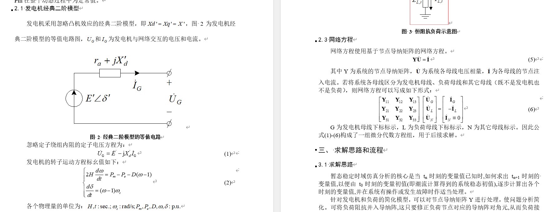 - 电力系统模型的建立:包括发电机模型、变压器模型、输电线路模型和负荷模型。
