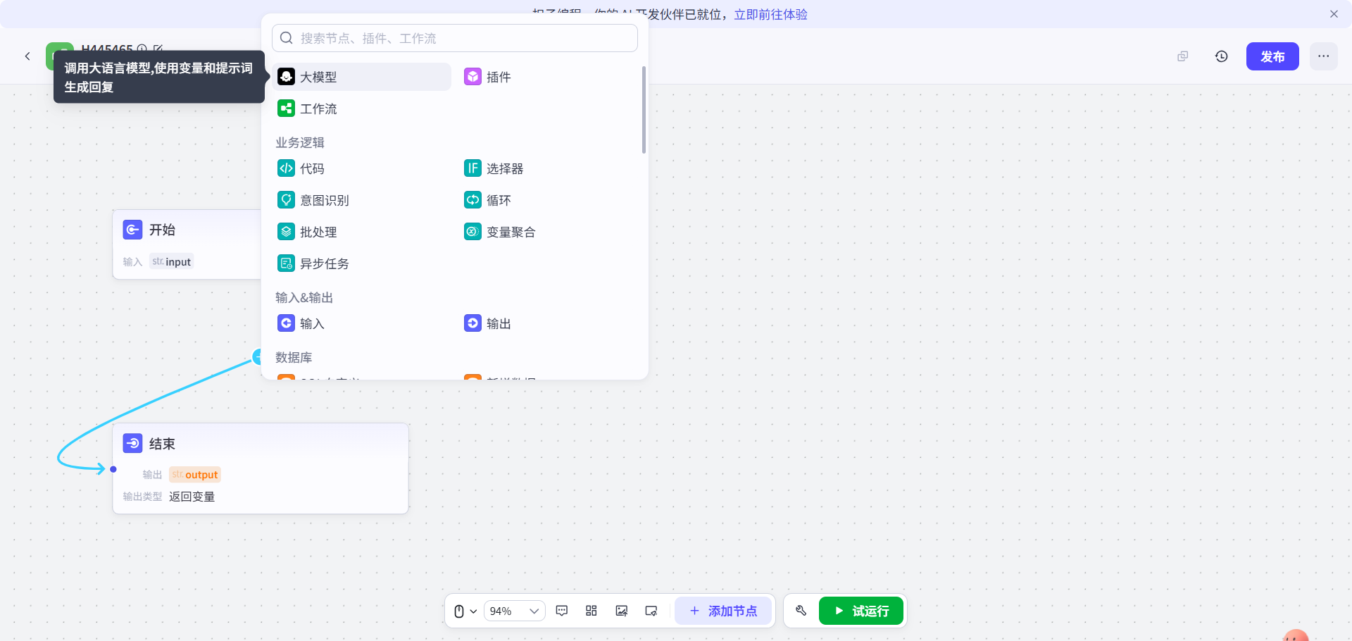 添加了大模型到工作流中,然后就给它起个名字