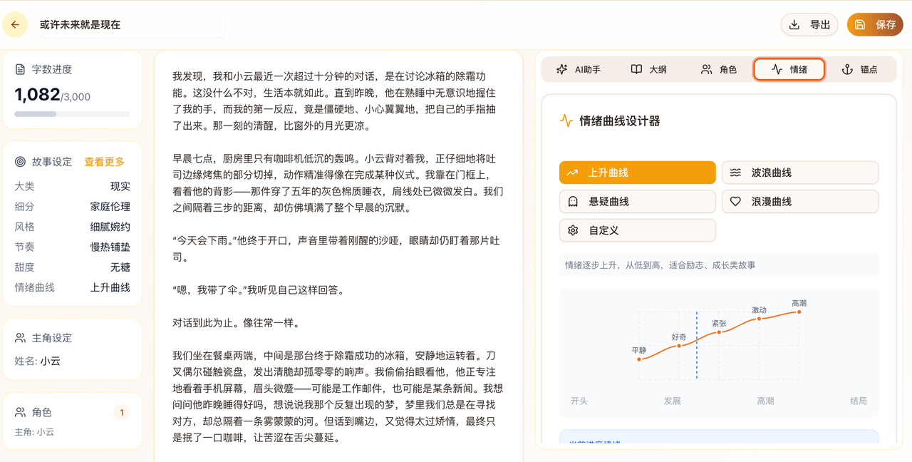 无论是从未写过小说的纯新手,还是深耕网文多年的资深作者,均可根据自身需求,灵活使用工具的各项功能,提升创作质量与效率。