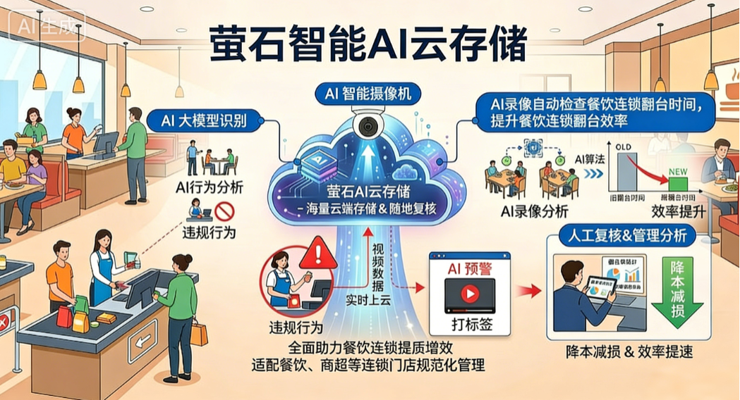 萤石开放平台智能AI云存储依托强大的技术能力与灵活的定制化特性,已在多个场景落地,为不同行业解决实际运营痛点,成为企业数智化升级的AI助手。