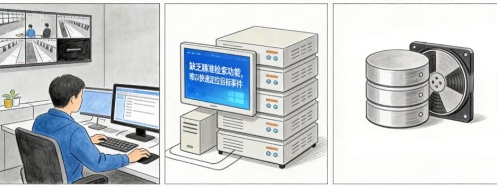 人工回看监控视频效率极低,时间成本比达 1:2~1:3,且易遗漏关键信息;