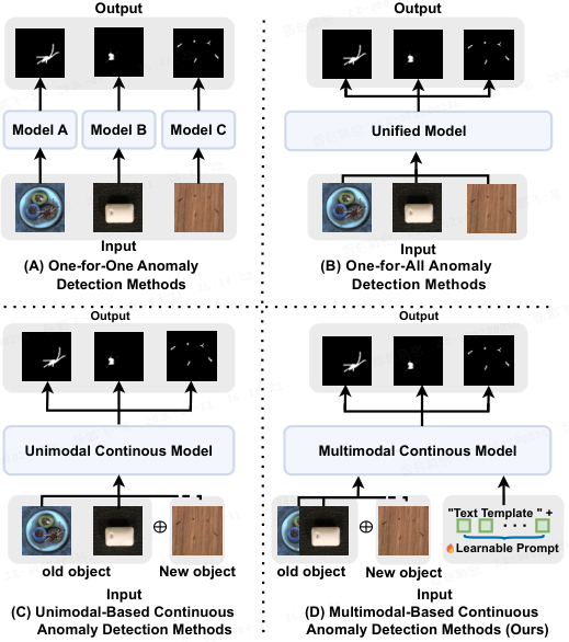 - 鉴于多模态信息在异常检测任务中的有效性已得到证实,有必要探索多模态提示在无监督连续异常检测中的应用,以突破当前性能瓶颈。