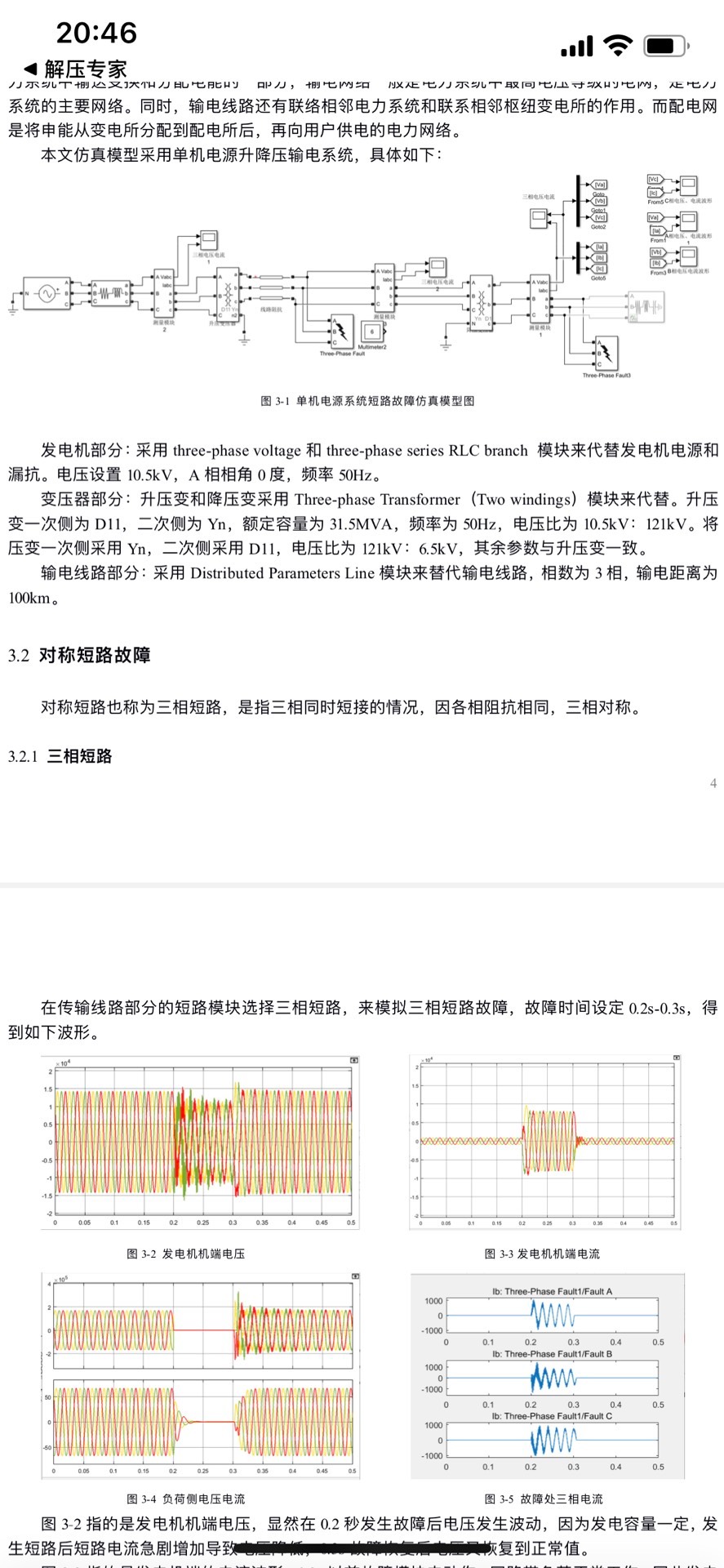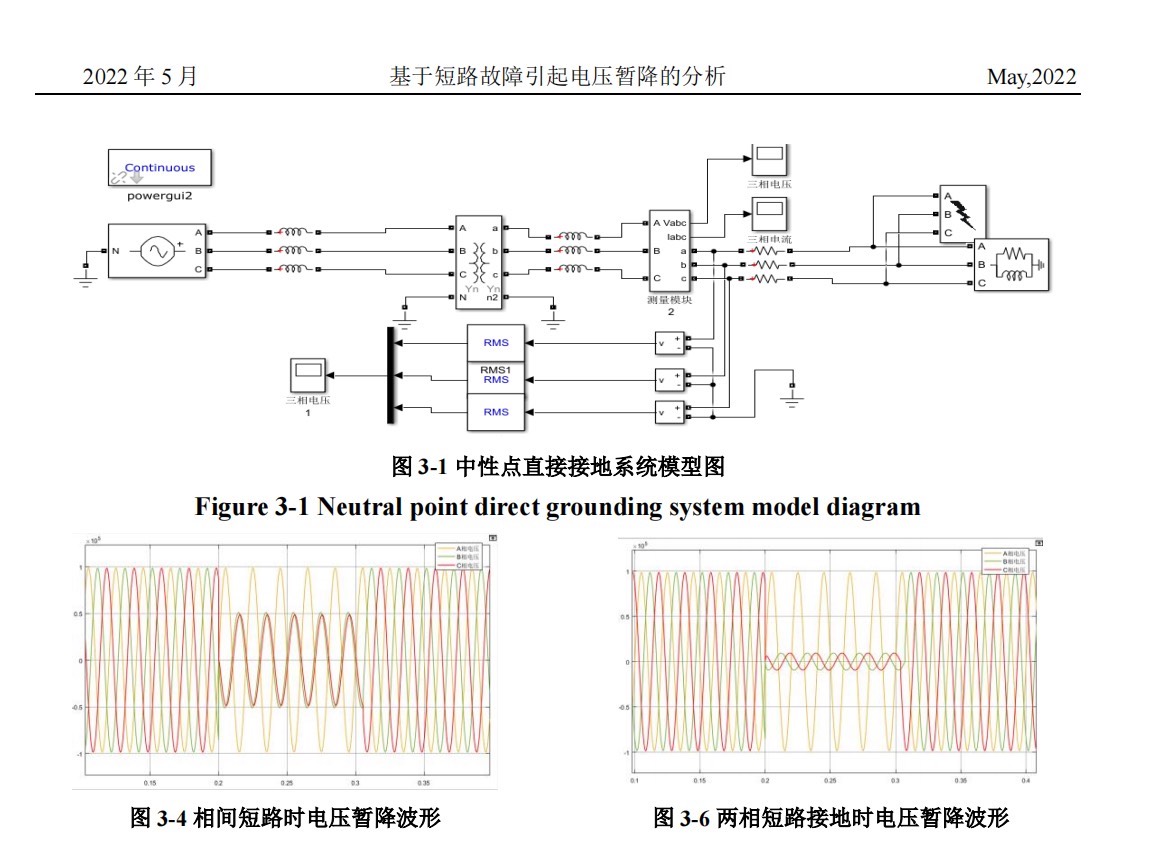为了更好地分析短路故障对电压的影响,本文采用了MATLAB进行仿真。通过建立电力系统模型,分别模拟单相接地短路、相间短路和两相接地短路三种故障情况。通过仿真,可以观察到故障处和非故障处的电压、电流波形变化,从而分析不同短路类型对系统运行的影响。