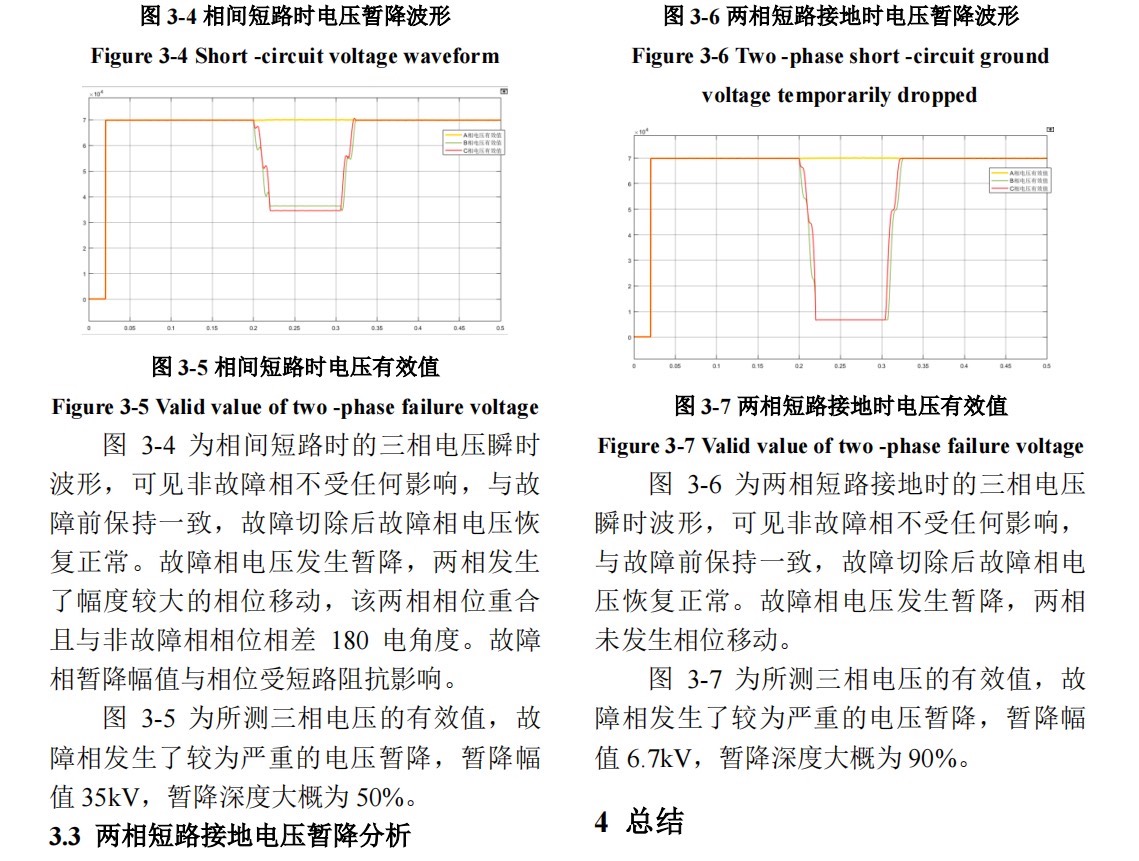 通过上述仿真,可以发现不同类型的不对称短路故障对电压的影响存在显著差异。单相接地短路和两相接地短路故障导致的电压下降幅度较大,而相间短路故障的电压下降幅度相对较小。同时,不同短路类型对电压波形的影响也存在差异,其中单相接地短路和两相接地短路故障的电压波形畸变较为严重。