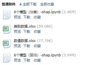 shap分析代码案例,多个机器学习模型+shap解释性分析的案例,做好的多个模型和完整的shap分析拿去直接运行,含模型之间的比较评估。 类别预测和数值预测的案例代码都有,类别预测用到的6个模型是(catboost、xgboost、knn、logistic、bayes,svc),数值预测用到的6个模型是(线性回归、随机森林、xgboost、lightgbm、支持向量机、knn)
