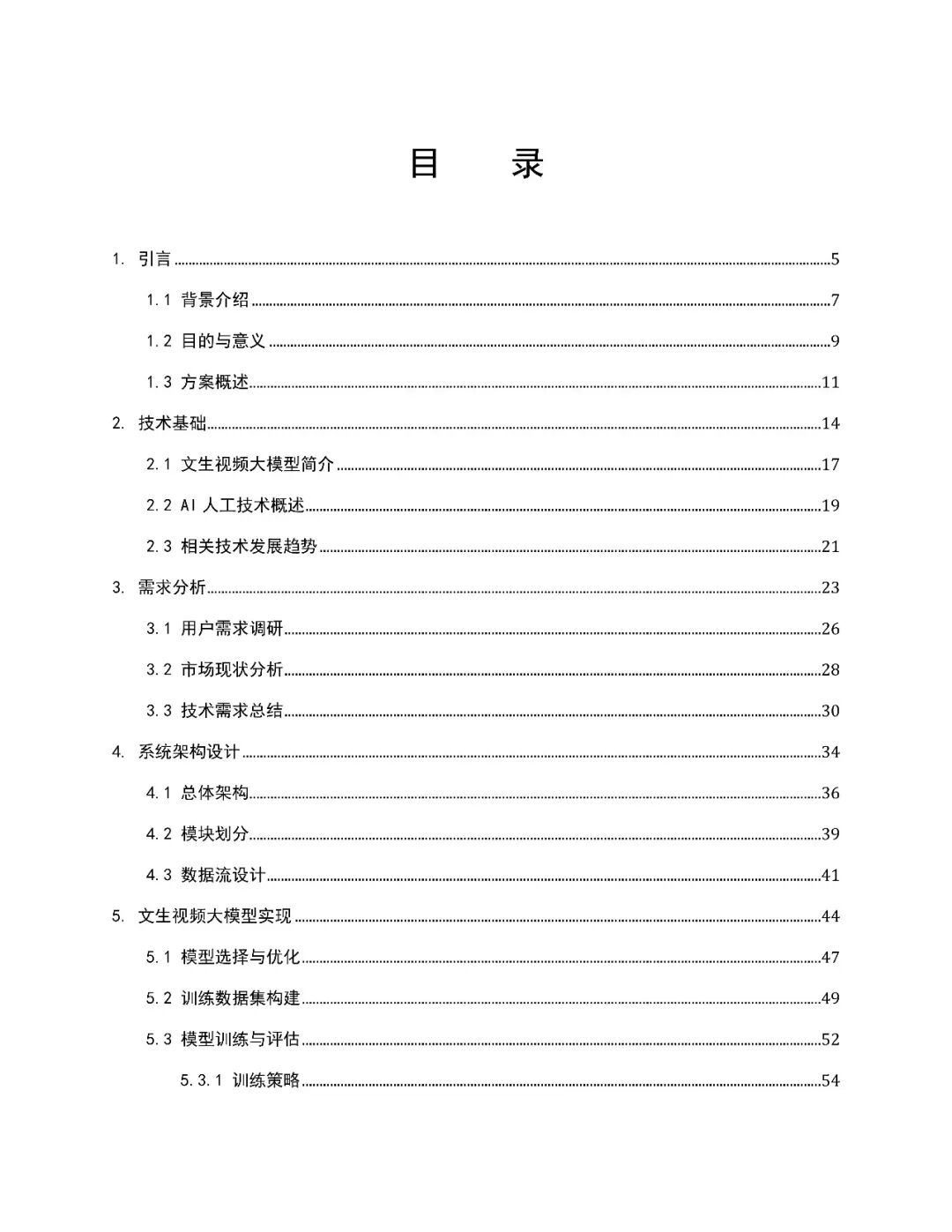 本方案基于文生视频大模型与AI人技术,实现从文本到视频的自动生成与智能交互。系统采用深度学习、多模态融合架构,支持教育、娱乐、商业等多场景应用,显著提升内容创作效率与用户体验,具备广阔市场前景。