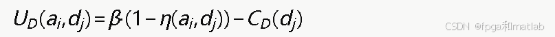 其中,β为防御收益系数,(1−η(ai,dj))表示防御成功保持的网络性能比例,CD(dj)为防御方采用策略dj的成本。