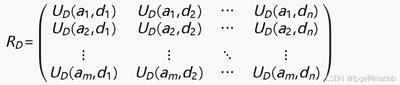 在单个DDoS攻击阶段,攻防博弈可以用矩阵博弈来描述。构建防御方的收益矩阵RD如下: