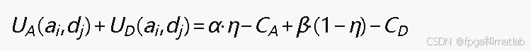 攻防双方的收益由攻防效果和实施成本两部分组成。当攻击方采用策略ai、防御方采用策略dj时,攻击方的收益函数定义为: