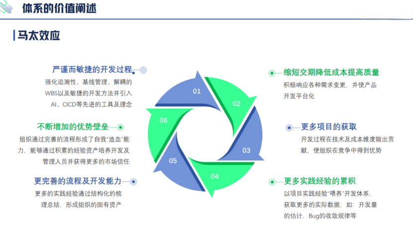 中小车企搭建轻量化 ASPICE 研发体系,并非单纯为满足标准要求,更核心的是实现研发能力的持续升级,形成马太效应。通过严谨而敏捷的开发过程,强化追溯性与基线管理,结合 AI、CICD 等先进工具,能快速响应需求变更,实现产品开发平台化,从效率、成本、质量三个维度提升研发竞争力; 以项目实践经验持续 “喂养” 研发体系,获取开发量估计、Bug 收敛规律等实际数据,持续优化体系流程; 将实践经验结构化梳理为企业固有资产,让研发流程与能力实现迭代升级;通过完善的流程形成企业自我 "造血" 能力,培养专业的研发与管理人才,获得更多市场信任,建立核心优势壁垒; 最终在技术与成本维度形成差异化竞争优势,让企业在汽车智能化浪潮中获取更多项目机会,实现研发能力与市场竞争力的双向提升