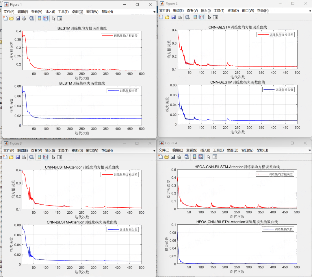 基于(鹰鱼优化算法)HFOA-CNN-BiLSTM-Attention、CNN-BiLSTM-Attention、CNN-BiLSTM、BiLSTM 四模型多变量回归预测附Matlab代码