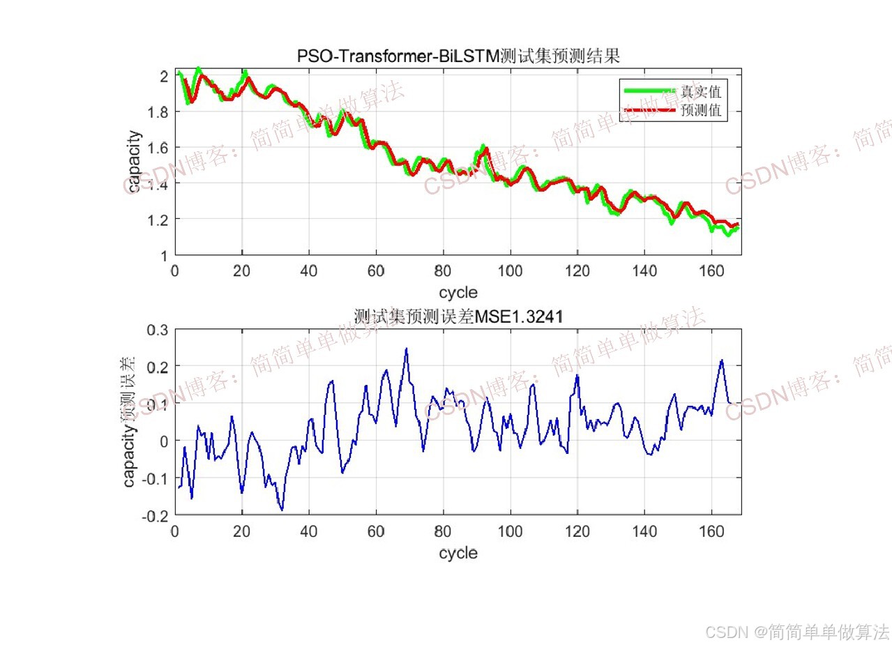 基于PSO粒子群优化的Transformer-LSTM时间序列预测算法,是粒子群优化(全局优化算法) 与Transformer-LSTM混合深度学习模型的结合体,核心解决传统Transformer-LSTM网络超参数人工调参效率低、预测精度差、模型泛化能力弱的问题,专门面向非线性、非平稳、长时序依赖的时间序列预测任务(如电池容量预测、负荷预测等)。