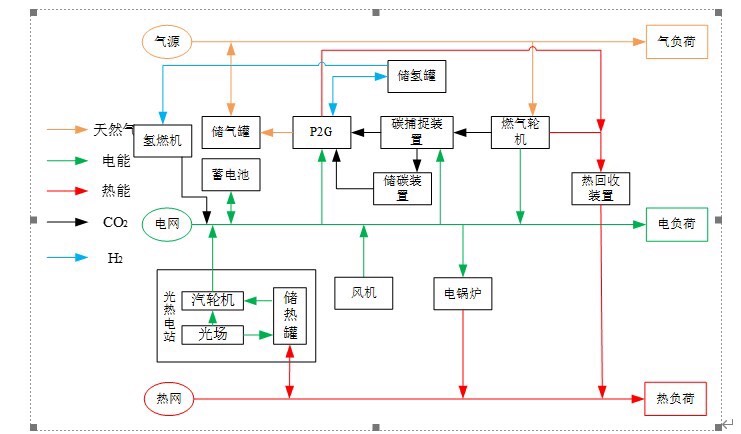 – 确定性多能流模型:涵盖燃气轮机、燃气锅炉、电锅炉、P2G、CSP、电/热/气/碳四元储能、碳捕集装置。