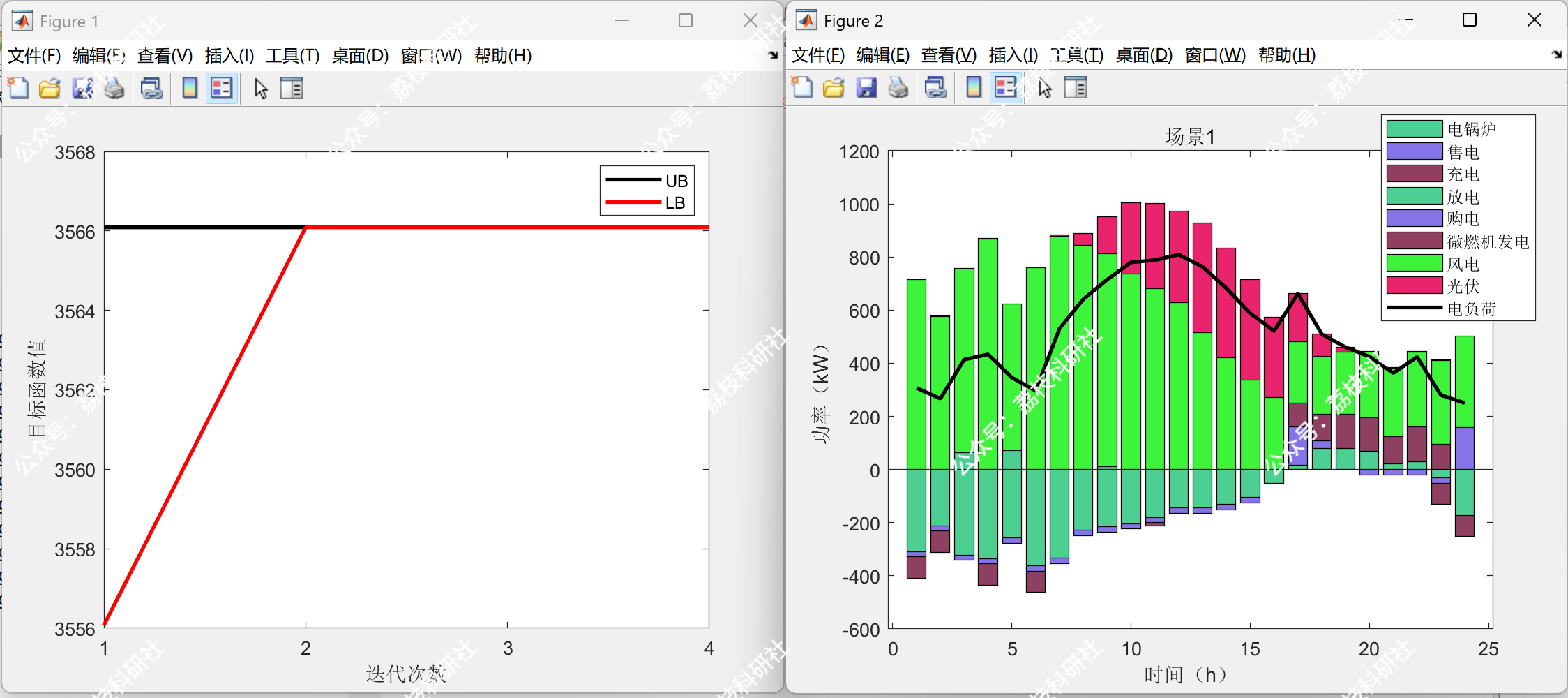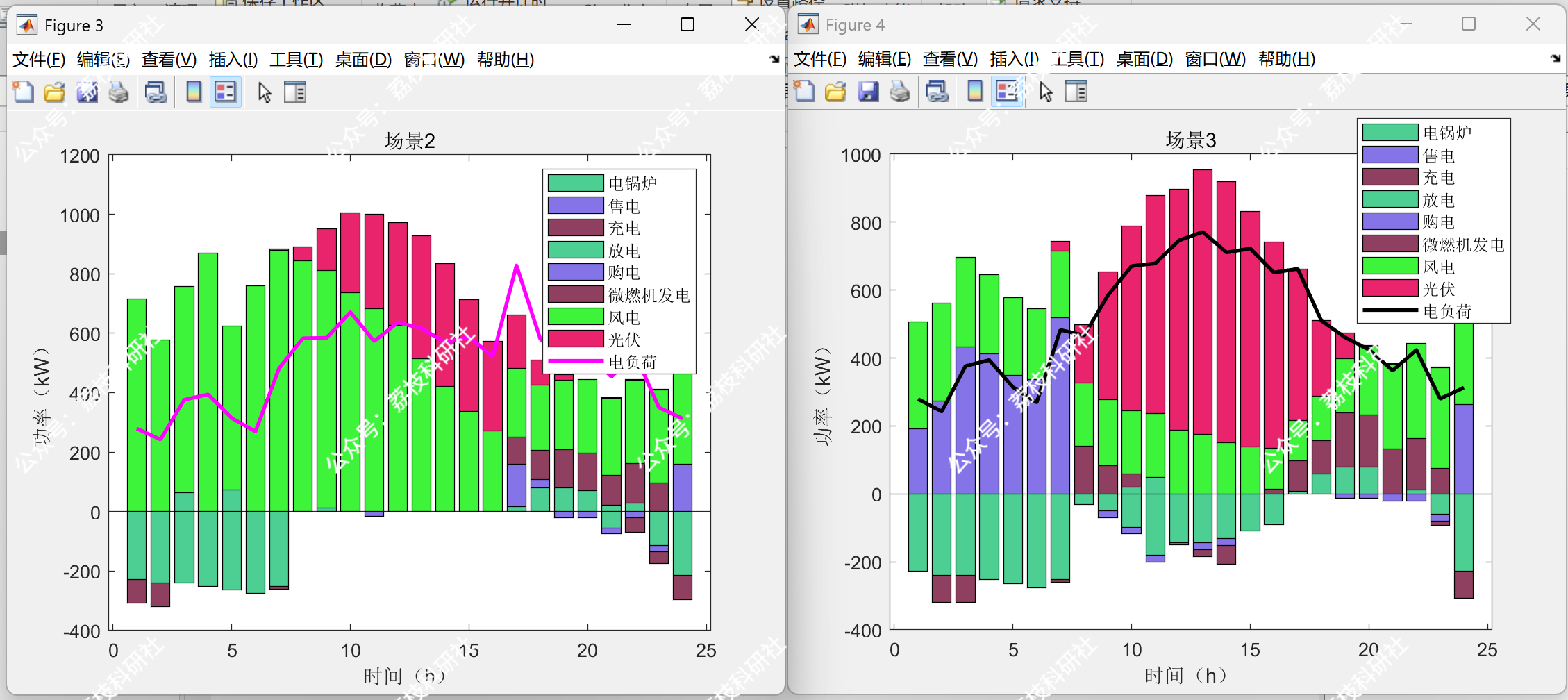在约束条件方面,模型遵循系统运行的物理规律与设备安全边界,构建了完整的约束体系。微型燃气轮机作为系统主要的可调电源,需满足出力上下限、爬坡速率限制以及启停逻辑约束,保证设备安全稳定运行;电储能与热储能分别满足充放电状态互斥、功率上下限、容量安全范围以及时序能量平衡约束,实现能量的合理充放与高效利用;电锅炉作为电热耦合设备,满足热电转换效率约束,实现电能向热能的高效转化;系统整体满足严格的电功率平衡与热功率平衡约束,保证供需实时匹配。