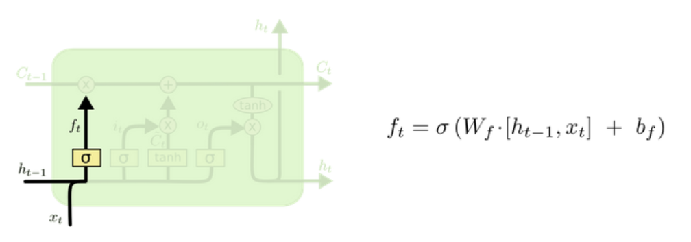 直观理解:如果 ft中的某个分量接近0,则对应的历史信息将被遗忘;接近1则保留。