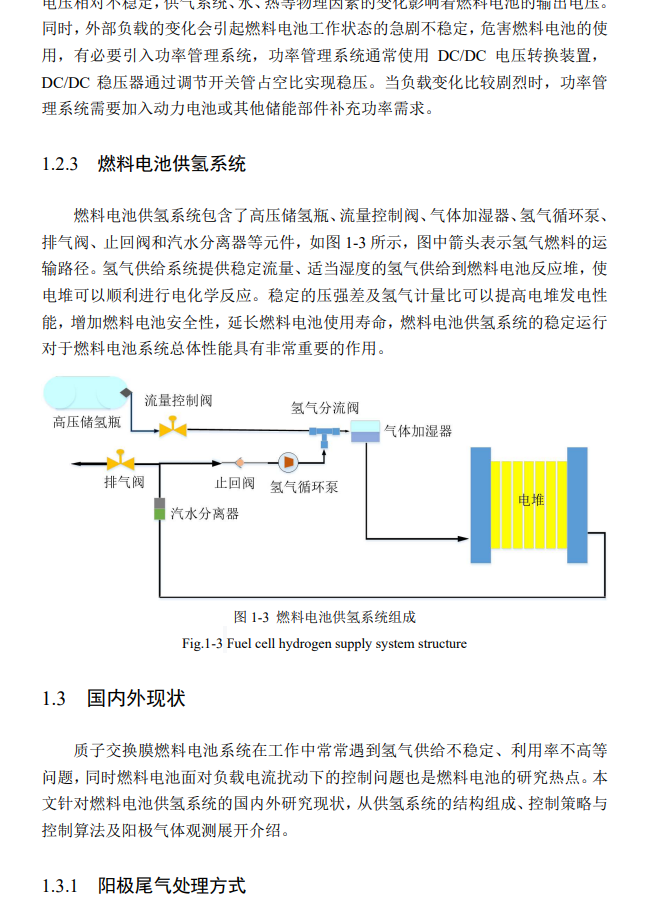 氢气系统的主要任务是为电堆提供高纯度的氢气,并回收未反应的氢气回到循环系统中。这一部分包括: