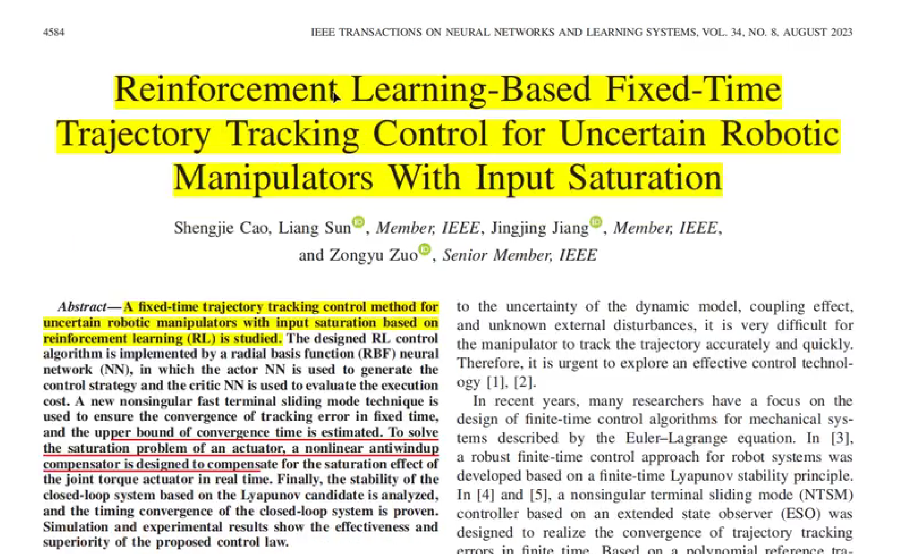 【一区顶刊复现】自适应强化学习机械臂固定时间轨迹跟踪控制(输入饱和不确定)