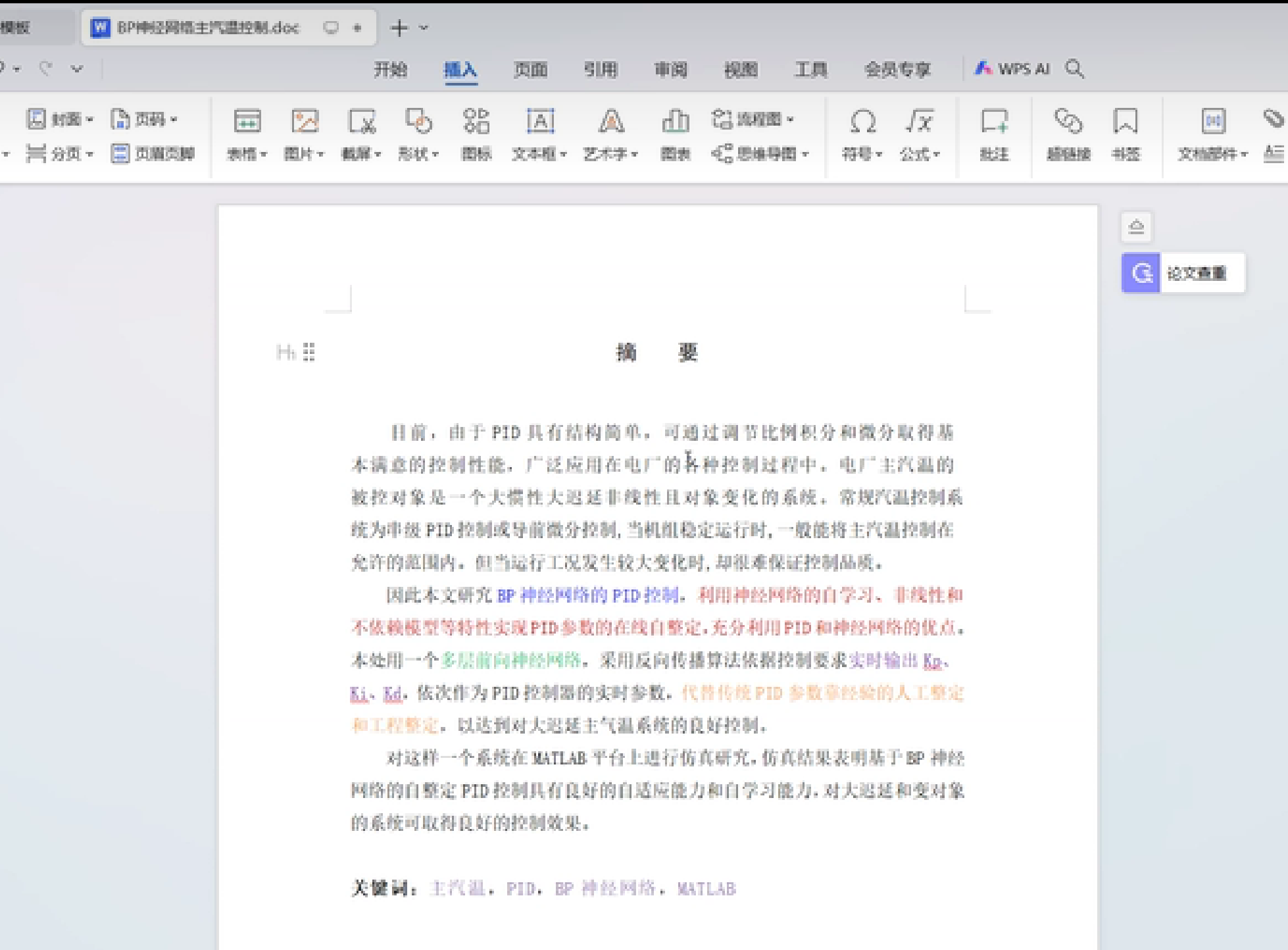 关键词:BP神经网络;在线自整定;PID控制;锅炉主汽温;大迟延系统